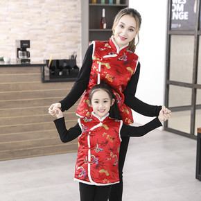 喜庆装唐装过年服亲子装表演新品装舞台母女儿童唐装背...