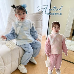 新年衣服女童套装喜庆拜年服卫衣儿童红色过年服冬装男...