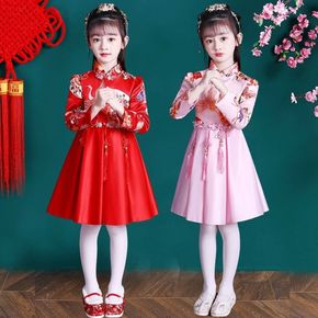 儿童女秋冬款旗袍加厚冬装礼服秋季红色唐装中国风古装...