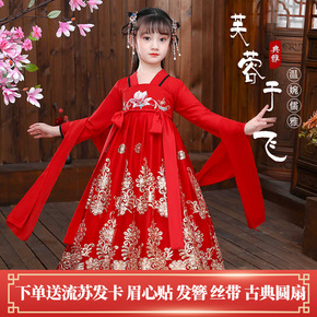 汉服女孩夏季连衣裙2022新款儿童表演中国风唐装宝...