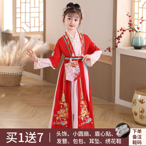 新款汉服女童夏季薄款风唐装儿童春秋襦裙小女孩古风超...