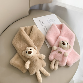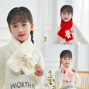 冬季新款儿童围巾仿兔毛小熊保暖毛毛围脖男宝宝韩版百...