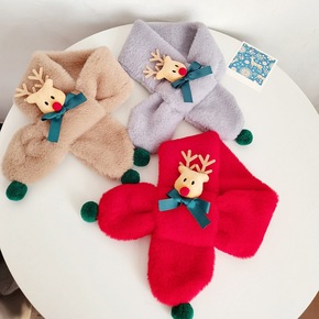 毛绒儿童围巾冬季女孩男女童小孩毛毛卡通加厚保暖宝宝...