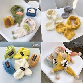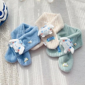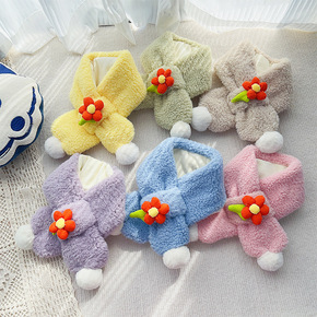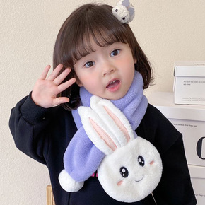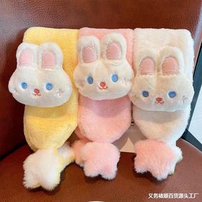 新款儿童围巾学生男孩女孩可爱卡通花朵兔子毛绒围巾保...