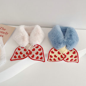 49 爱拼色小爱心儿童围巾冬季新款女宝宝毛绒拼接交...