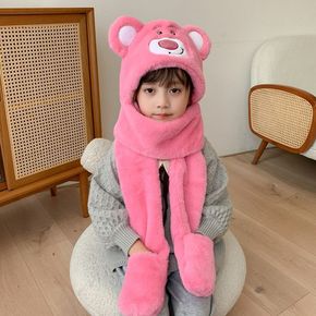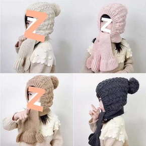 韩版可爱超萌女童毛线帽冬加绒儿童帽子围巾一体帽秋冬...