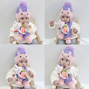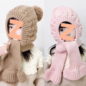 宝宝帽子冬季儿童保暖加厚帽子围巾两件套男童女童防风...