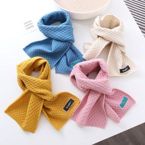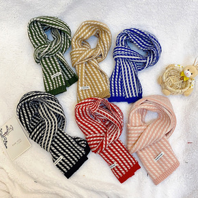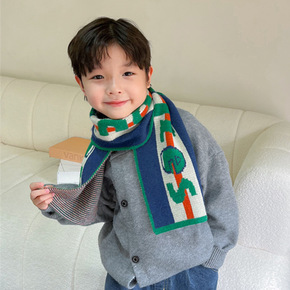 洋气拼色字母冬季韩版儿童彩条纹围巾男孩女童针织保暖...