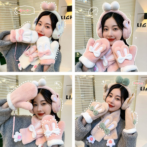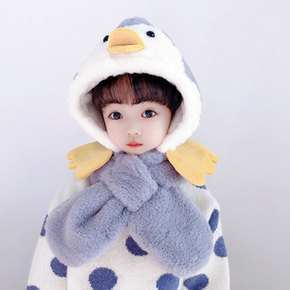 女童帽子冬季加厚保暖护耳围巾一体婴幼儿宝宝可爱超萌...