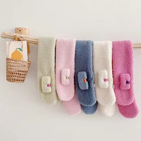 秋冬糖果色系亮色笑脸标羊羔绒交叉儿童围巾潮男女宝宝...
