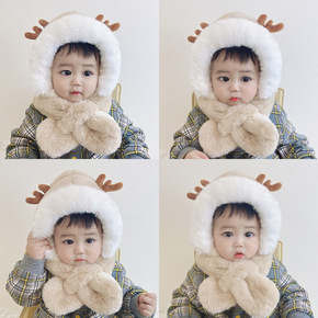 儿童帽子秋冬季围巾一体加绒帽子婴幼儿女童可爱超萌男...