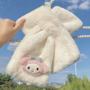 2022秋季新款女熊姑娘围巾镂空披肩空调巾日系森系...