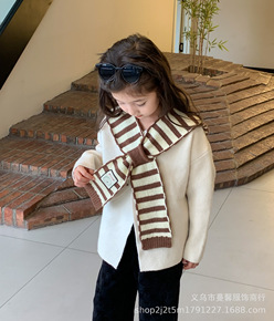 ins风韩版纯色儿童小披肩毛线外搭坎肩春秋男女假领...