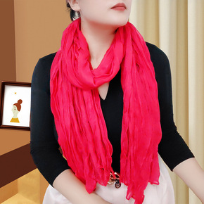 纯色棉麻大尺寸中国红色丝巾夏围巾披肩两用女生秋冬季...