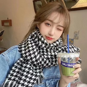 2022千鸟格子围巾女秋冬季百搭学生披肩保暖围脖女...