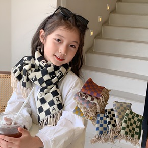 儿童围巾秋冬季复古菱形格针织围巾男宝女宝保暖毛线宝...