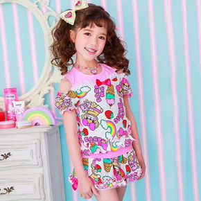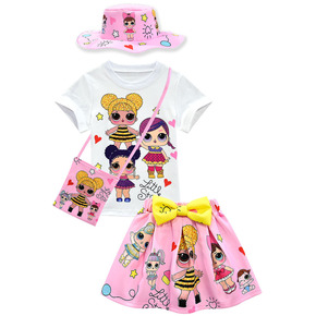 新款娃娃童套装女童4件套短袖短裙包包渔夫帽热转印厂...