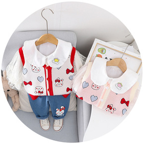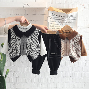2022春季新款男童女童翻领毛衣马甲三件套宝宝衬衫...