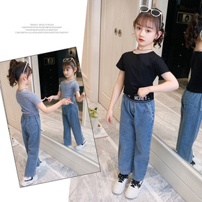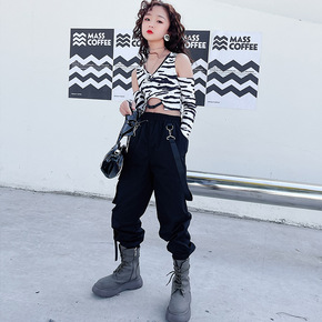 女童套装秋款儿童条纹毛衣+PU背心裙两件套3-8岁...