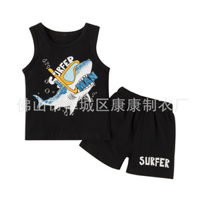 2022年现货欧美童装夏季新款背心鲨鱼印花背心短袖...