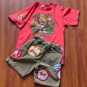 【年后】22夏款潮牌高定童装黑超印章灯芯绒短裤小猴...