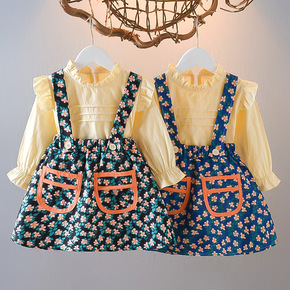 韩版连衣裙儿童秋款花边衬衣小碎花吊带裙可爱裙子一件...