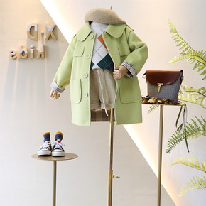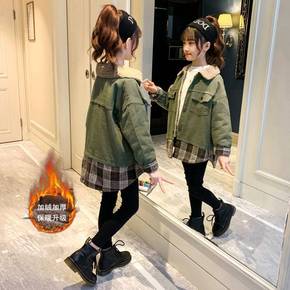 2020童装新款女童洋气大衣儿童秋冬装中长款加绒加...