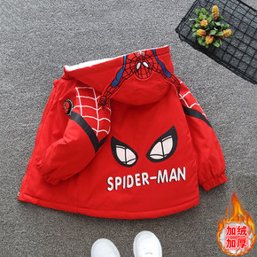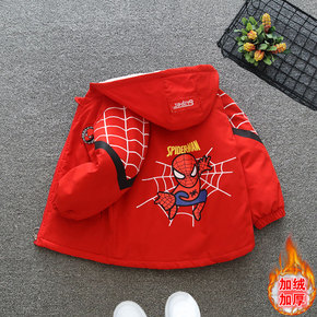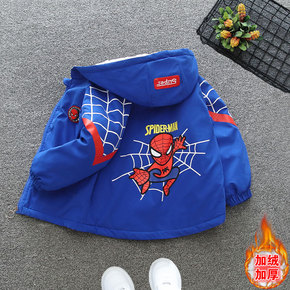 男童蜘蛛侠秋冬装外套加绒加厚2021新款派克服中大...