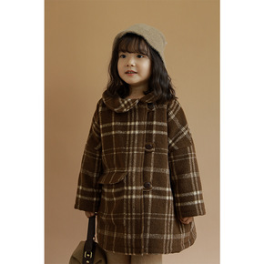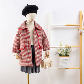 童装女童毛呢外套秋冬季宝宝韩版洋气中长款气质千鸟格...