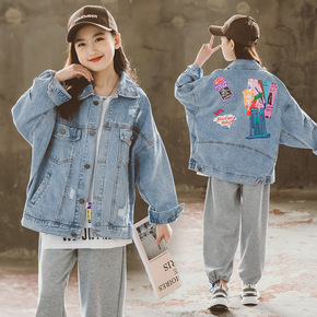 女童外套秋装2021新款网红韩版牛仔中大童春秋季儿...