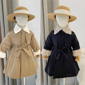女童外套超柔羊羔毛长款夹棉加厚大衣外衣21冬装新款...