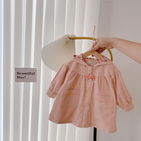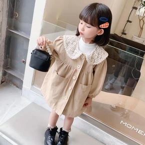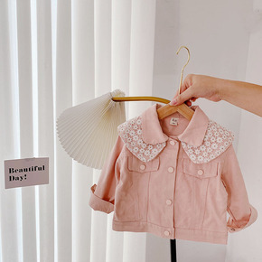 女童外套网纱荷叶领娃娃上衣开衫21秋装新款外贸童装...
