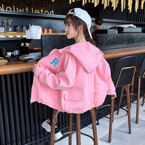 2021秋季新款女童外套秋装中大童运动开衫贴标洋气...