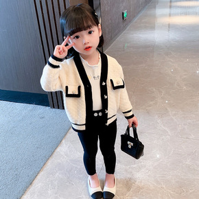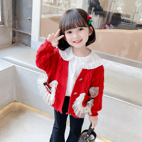 女童针织开衫2021秋冬新款儿童洋气毛衣外套女宝宝...