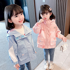 女童风衣2021春秋新款外套时尚洋气小童宝宝英伦风...