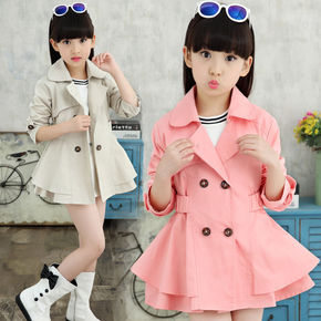 女童风衣外套春秋款新款中小童洋气中长款韩版儿童女宝...