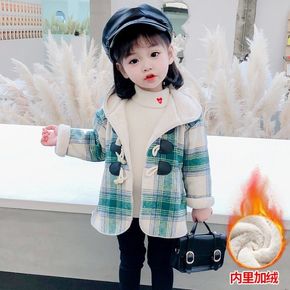 包邮女中长款毛呢大衣小童新款冬款格子复合外套202...