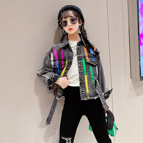 外贸童装批发女童外套秋装新款儿童短款牛仔外套韩版时...