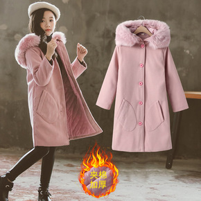 女童呢大衣秋冬装韩版儿童加厚洋气毛呢子风衣外套女孩...