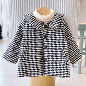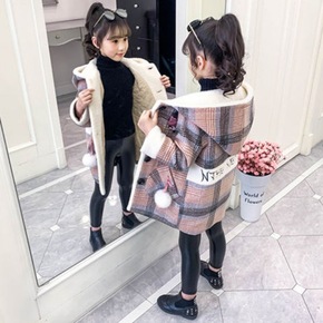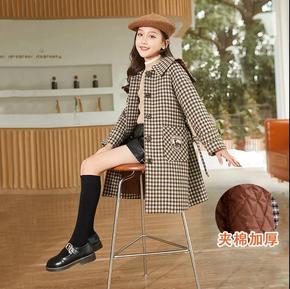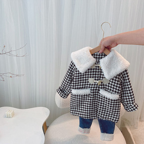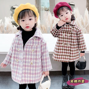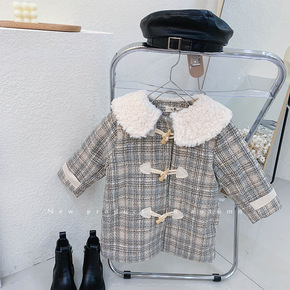 2021新款韩版女童秋冬格子毛呢外套洋气加厚儿童宝...