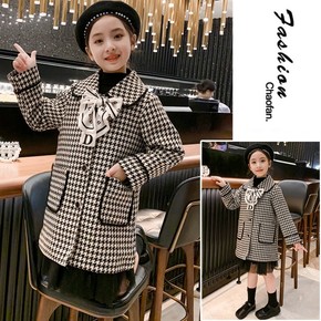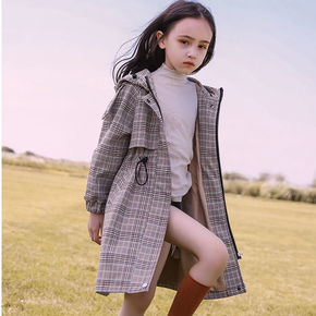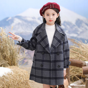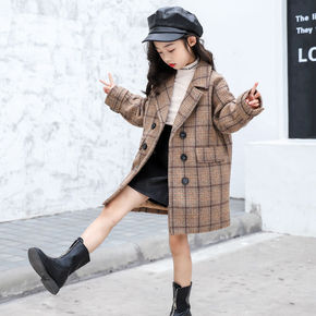 女童毛呢外套2021秋冬装风衣小女孩格子中大儿童洋...