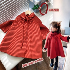2021新春女童秋冬洋气毛呢大衣宝宝韩版冬装儿童加...