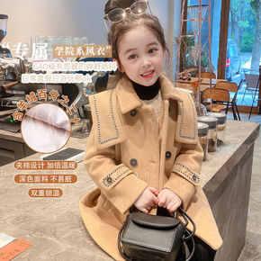 女童呢子外套秋冬202新款中大童加绒洋气风衣儿童毛...