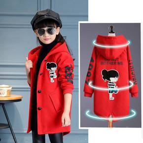 女童新款春秋季时尚简约毛呢大衣时髦儿童洋气连帽休闲...