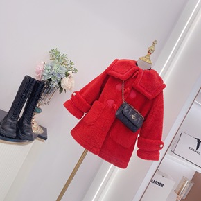 女童毛呢外套秋冬2022新款厚洋气水貂绒冬装小女孩...