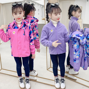 童装女童冲锋衣2021新款三合一可拆卸加厚中大童春...