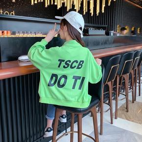 女童卫衣外套果绿秋季立领拉链开衫中大童潮字母运动上...