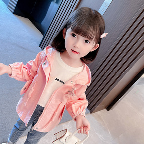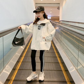外贸2021女童秋装外套风衣中大童 春秋连帽拉链衫...