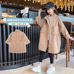 女童秋装外套2020新款中大童韩版宽松风衣儿童中长...
