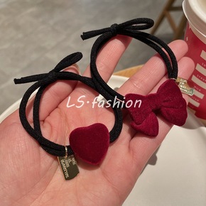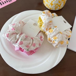 甜美爱心华夫格发圈少女大肠圈发绳布艺头绳简约百搭日...